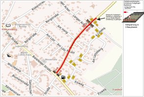 Eine Umleitungsstrecke für den PKW- und LKW-Verkehr sowie für den Fuß- und Radverkehr wird ausgeschildert. Ausschließlich für Anlieger bleibt die Straße bis zur Baustelle frei.