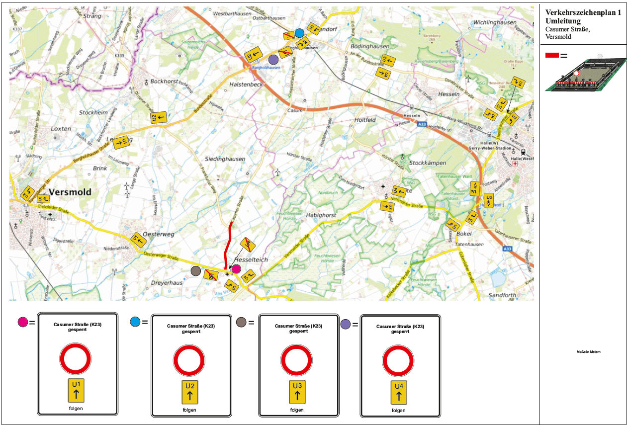 Verkehrszeichenplan Fußgänger und Radfahrer