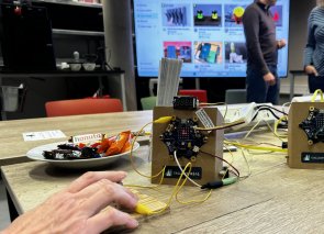 Zu den Angeboten gehörten unter anderem Einblicke in das Digital Making mit Schneideplotter, Stickmaschine, 3D-Drucker und Lasercutter sowie kleine Programmier- und Experimentiermöglichkeiten mit Calliope mini, Ozobots und Sphero Bolts. Auch Angebote im Bereich Audio, Video und Virtual Reality wurden vorgestellt. Besucher*innen konnten eigene Tonaufnahmen erstellen oder mit VR-Brillen virtuelle Lernumgebungen erleben. Besonders der Greenscreen Raum stieß auf Begeisterung. Besucher*innen konnten eigene Bilder erstellen, mit unterschiedlichen Hintergründen experimentieren und so erleben wie sich digitale Medien für kreative Projekte im Unterricht einsetzen lassen.