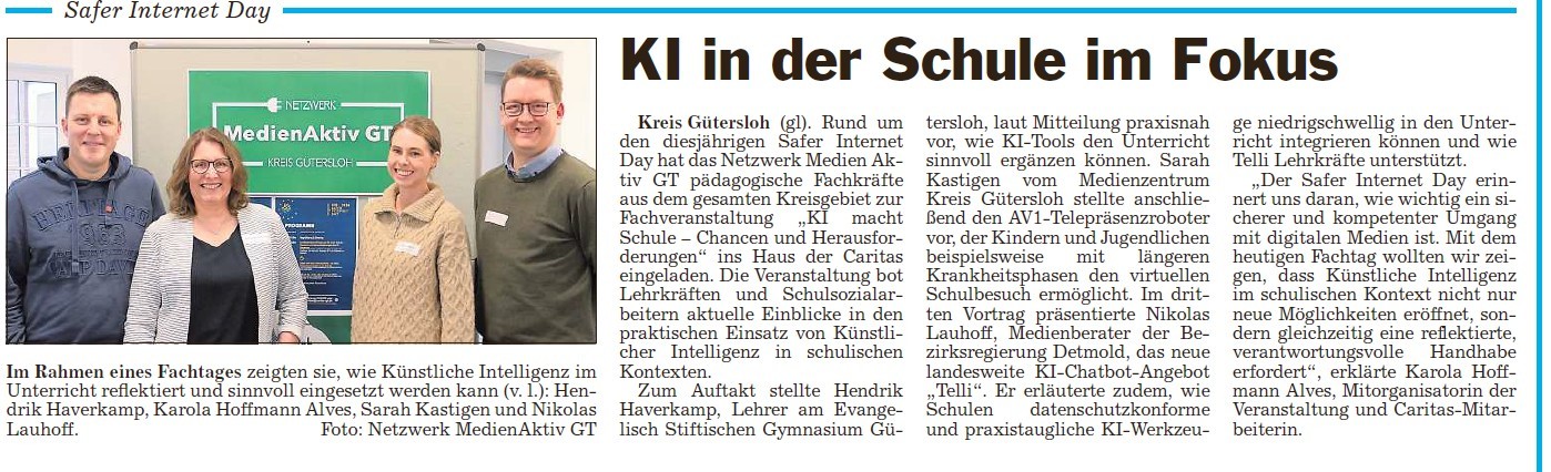 Das Netzwerk Medienaktiv GT läd zu der Veranstaltung „KI macht Schule – Chancen & Herausforderungen“ ein.