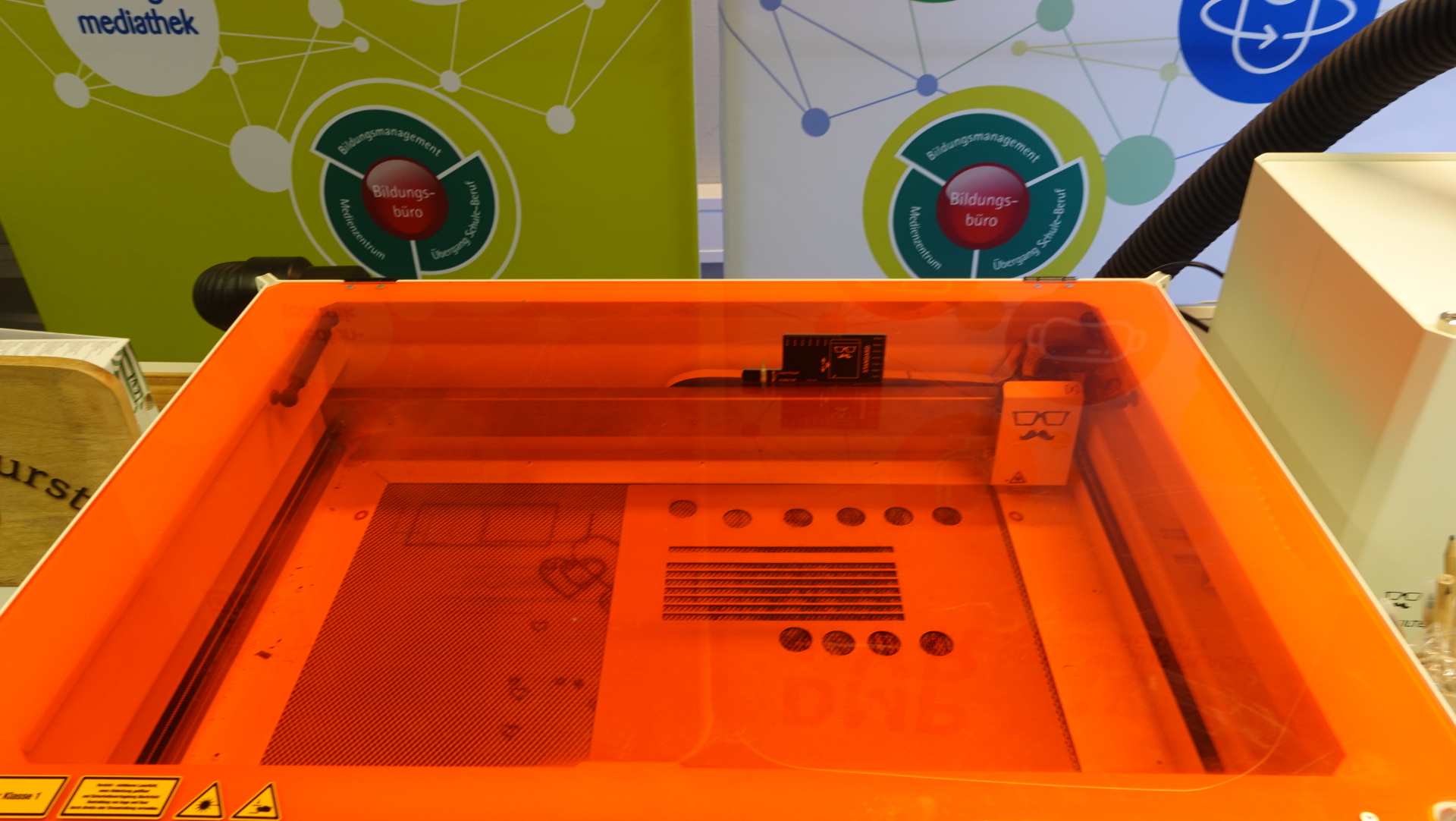 Der Lasercutter bietet die Möglichkeit des Laserschneidens sowie des Lasergravierens. Das Gerät ermöglicht Schüler*innen praktisches Arbeiten vom künstlerischen Einfall bis hin zur technischen Umsetzung. Damit können der Einsatz und die Nutzung des Gerätes individuell gestaltet werden.