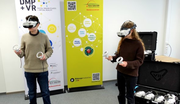 Im Rahmen des NRW-weiten Pilotprojekts Digital Making Places + Virtual Reality (DMP+VR) ist das Medienzentrum Gütersloh Teil einer Initiative, die Schulen dabei unterstützt, VR-Brillen gezielt im Unterricht einzusetzen.