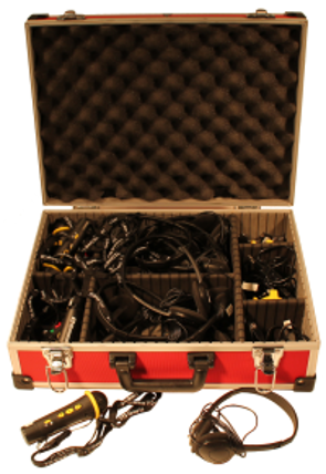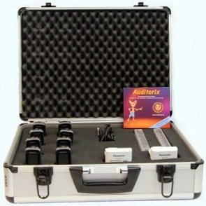 Im Koffer zudem enthalten: 4 USB-Kabel, 16 Akkus, 2 Akku-Ladegeräte, Software-CD Auditorix