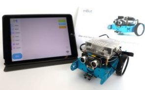 Der mBot ist ein Roboter-Bausatz, der aus einem Aluminium-Chassis, verschiedenen Sensoren und elektronischen Bauteilen besteht. Die dazugehörige mCore-Platine basiert auf dem Arduino Uno, der über eine Programmier-Software auf der Basis von Scratch am Computer programmiert werden kann. So können mit dem mBot z.B. Linienfolge-Rennen, Fußballspiele, Hindernisläufe o.ä. durchgeführt werden.