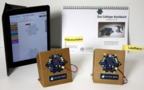 Der Calliope mini ist ein kleines Board, das entwickelt wurde, um Schülerinnen und Schülern ab der 3. Klasse einen einfachen Zugang zur digitalen Welt zu ermöglichen. In einer App oder am PC kann der Calliope leicht so programmiert werden, dass er z.B. den Namen der SchülerInnen in Leuchtschrift anzeigt, Töne abspielt, bei Dunkelheit automatisch das Licht einschaltet, die Temperatur misst oder als Alarmanlage fungiert. Auch die Programmierung von Spielen wie etwa einem Angelspiel, Reaktionsspiel oder der „Heiße Draht“ sind möglich.