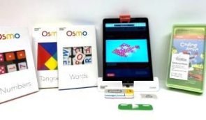 Das digitale Lernspielsystem "Osmo Genius Starter Kit" integriert physische Spielsteine in virtuelle Lern- und Spielwelten. Über einen iPad-Ständer und einen Spiegelaufsatz können haptische Materialien vom Tablet erfasst werden und so Rückmeldungen zu Aufgaben erfolgen. Das Set enthält fünf Spiele: NUMBERS: Kärtchen mit Punkten und Ziffern, um mathematische Aufgaben zu lösen. TANGRAM: Puzzleteile aus Holz, die nach Vorgaben zusammengelegt werden müssen. NEWTON: Virtuelle Bälle auf dem Bildschirm müssen durch haptisches Material in Zielzonen umgelenkt werden. WORDS: Ein Galgenmännchen-Spiel MASTERPIECE: Ein Bild von der Kamera kann als Zeichenvorlage genutzt werden. Coding Awbie: Haptische Programmierblöcke steuern eine Figur auf dem Tablet.