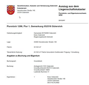 Mit dem Auszug aus dem Liegenschaftsbuch erhalten sie alle Textlichen Infos zu den Grundstücken die im Kataster vorliegen. Eigentümerinfos allerdings nur bei berechitem Interesse.