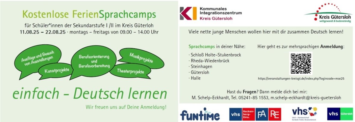 Der Anmeldezeitraum ist jetzt geöffnet und endet am 25. Juni 2025. Nach Abschluss der Anmeldephase erhalten die Schüler*innen eine E-Mail mit Informationen über den genauen Standort des Sprachcamps sowie alle weiteren wichtigen Details.