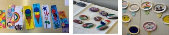 Nach dem gemeinsamen Lesen in gemütlicher Atmosphäre wurden individuelle Lesezeichen gebastelt. An einem anderen Tag wurde über Länder, Farben und Formen geprochen und anschließend Holz oder Steine bemalt. Ihre Kreativität und Individualität konnten die Schülerinnen und Schüler auch anhand von selbst gestalteten Heißluftballons unter Beweis stellen. Jeder Ballon ist einzigartig und spiegelt die Kreativität und Persönlichkeit der Kinder wider.