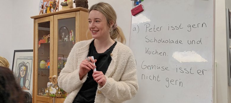 Leonie Müller unterrichtet in der Sprachwerkstatt in Schloss Holte-Stukenbrock. Sie ist Sprachdozentin und Mitarbeiterin in der sozialpädagogischen Betreuung bei Pro Arbeit e. V. Foto: Pro Arbeit e. V.