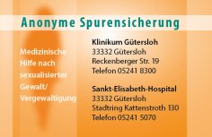 Opfer von sexualisierter Gewalt haben seit 2017 im Kreis Gütersloh die Möglichkeit, vertraulich die Spuren einer Gewalttat im Klinikum Gütersloh oder im Sankt Elisabeth-Hospital sichern zu lassen, ohne sofort eine Anzeige zu erstatten.