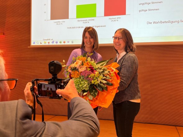 Kreisdirektorin Susanne Koch (r.) gratuliert Ina Laukötter nach der Wahl zur neuen Landrätin. Foto: Kreis Gütersloh